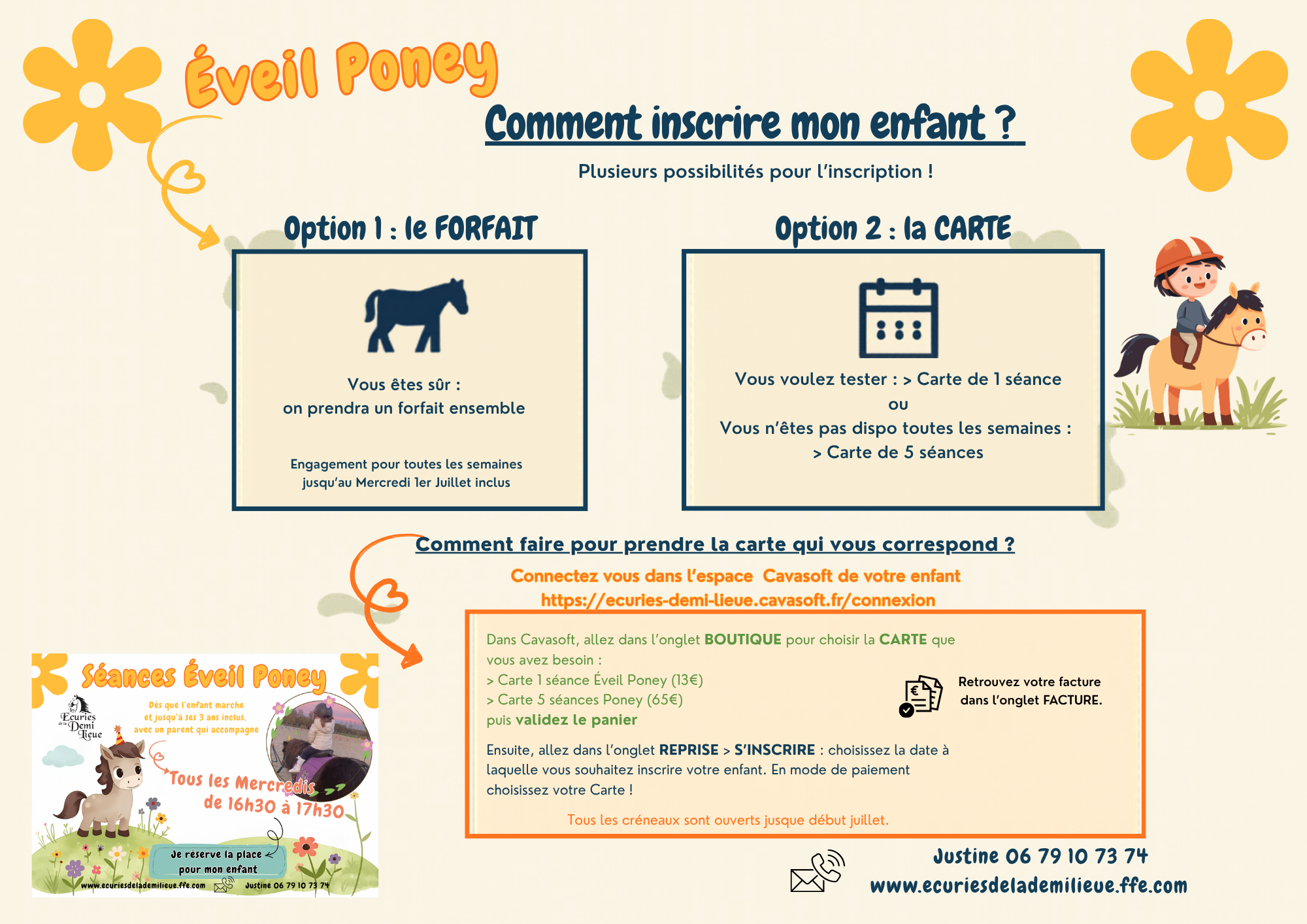 Déroulement des séances d’Eveil à Poney